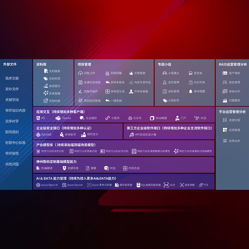 医疗器械产品上市前,,,,要熟悉严格与繁复评审标准,,,,整理分析监管机构指导文件中的海量信息。。。企业急需一个智能化解决方案,,提升知识管理效率,,,,提高评审通过率,,,,以提升其市场竞争力。。